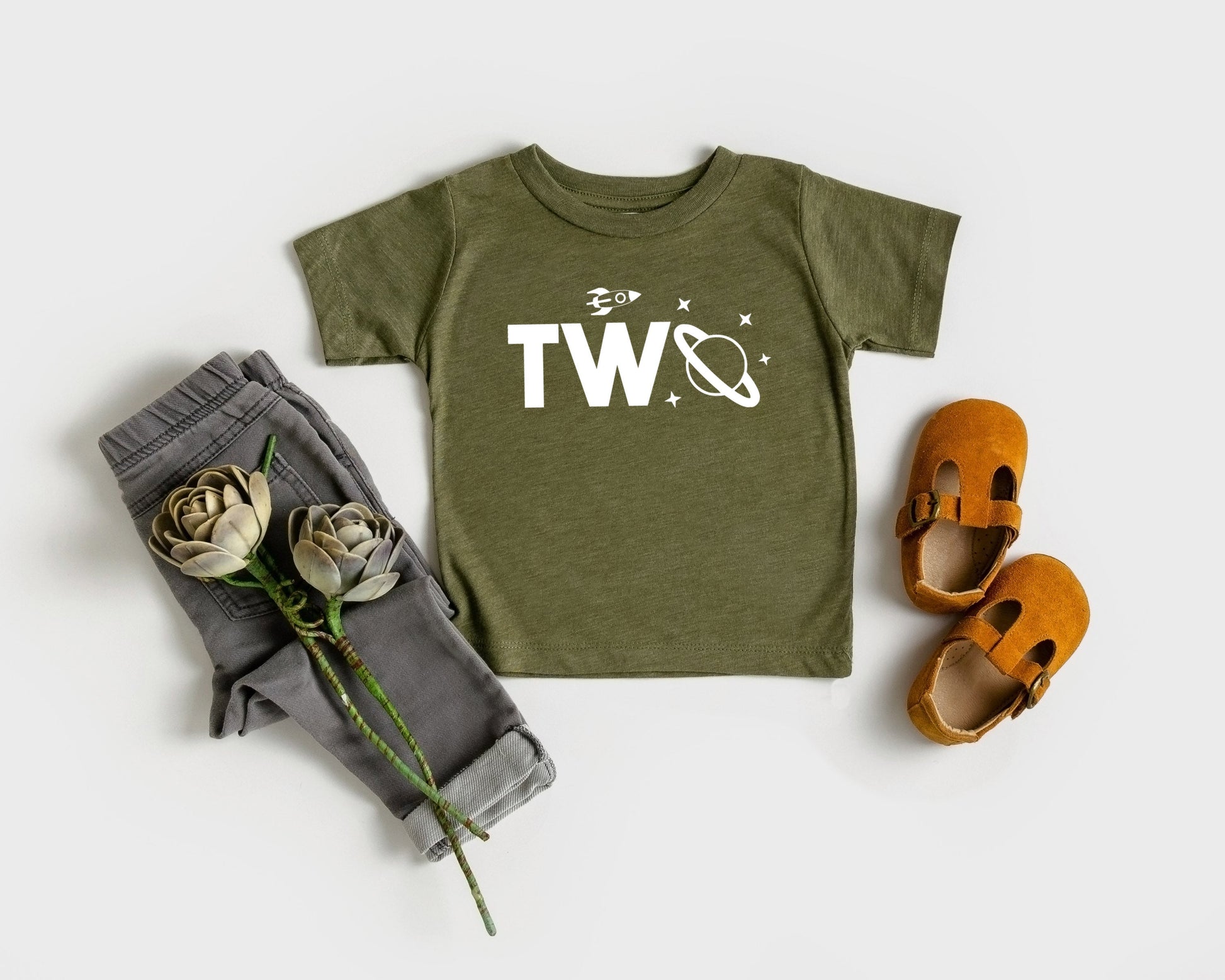 Space themed Two 2nd Birthday Kids T-Shirt | Baby birthday shirt