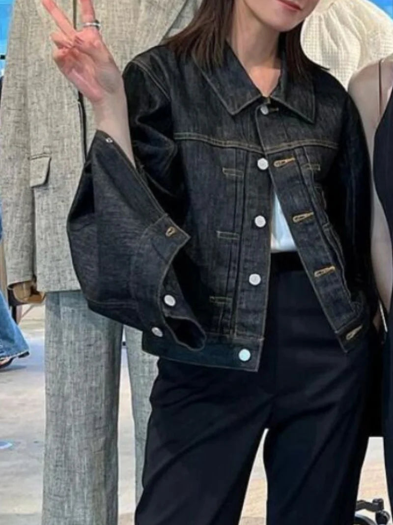 Spring New Vintage Casual Jeans Jacket Women Turn-down Collar Loose Sleeve Fashion Denim Coat Japanese All-match Outwears