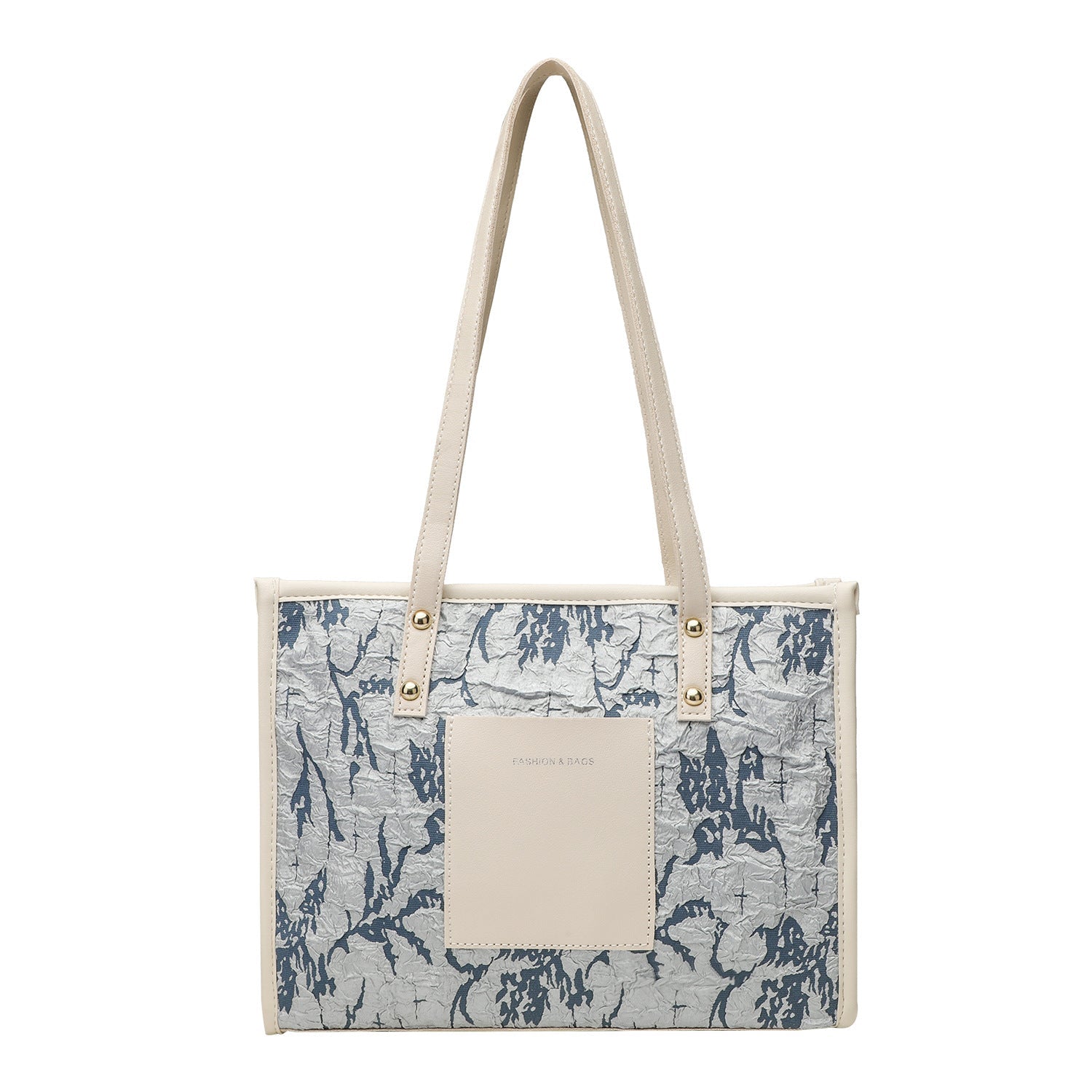 Square tote large capacity bag, women's winter tote bag, printed blue commuter fashion versatile portable shoulder bag