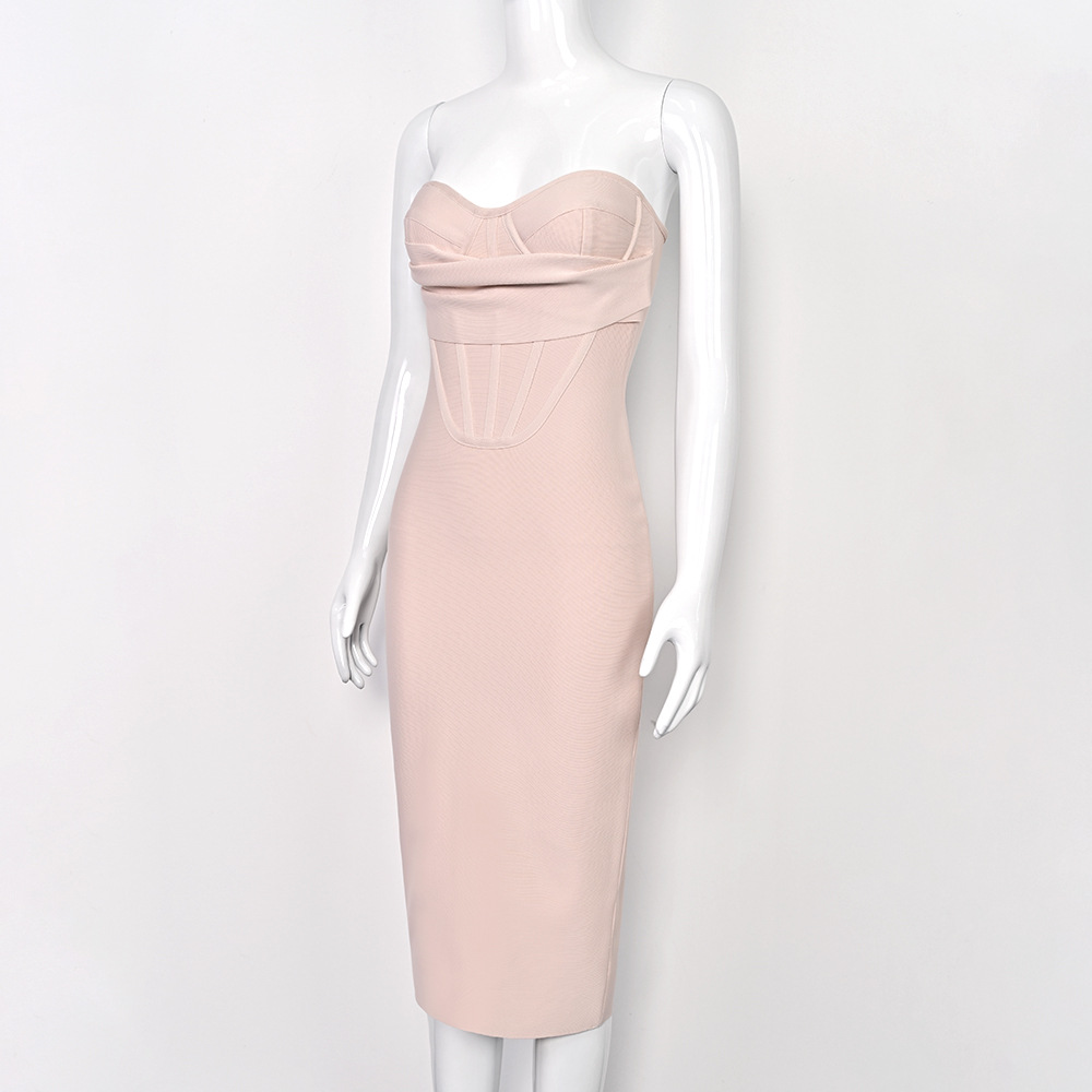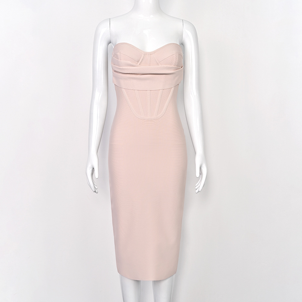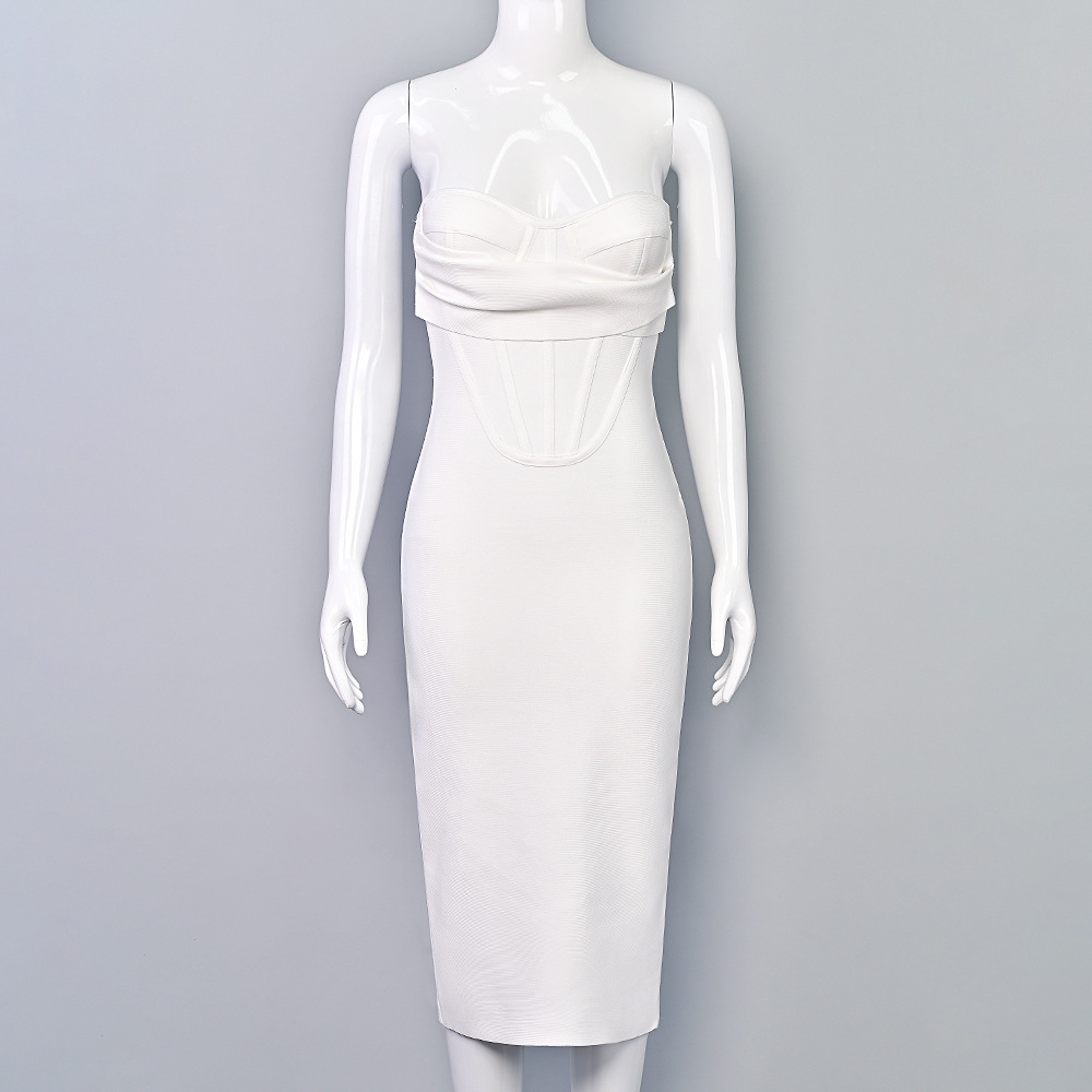 Style: Tube top, one-line collar, sleeveless, high waist, mid-length.