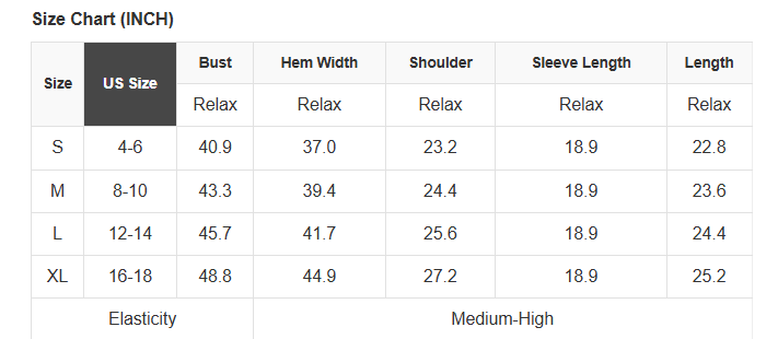 See size chart for approximate measurements.