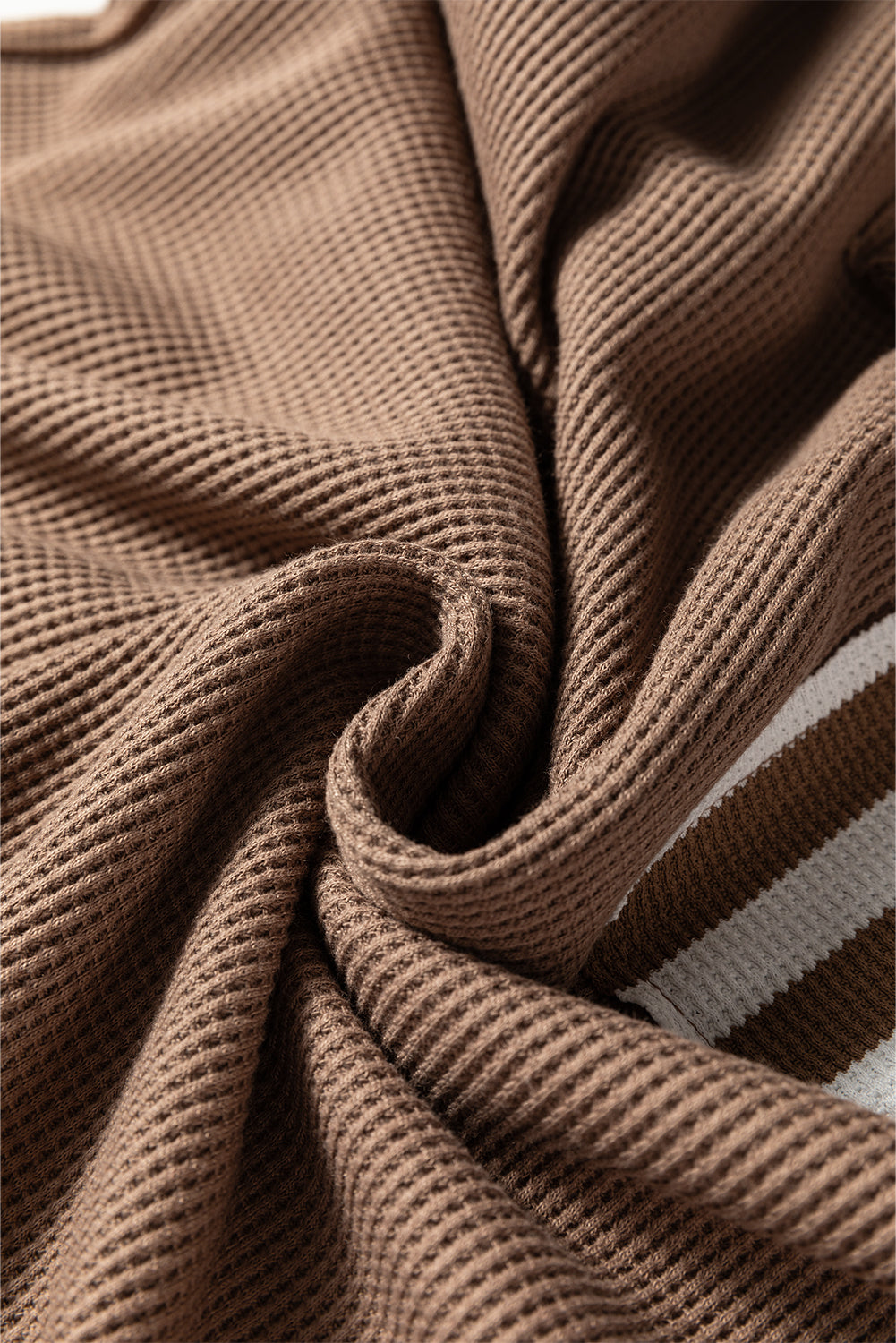 Stripe Patchwork Waffle Knit Buttoned Hoodie