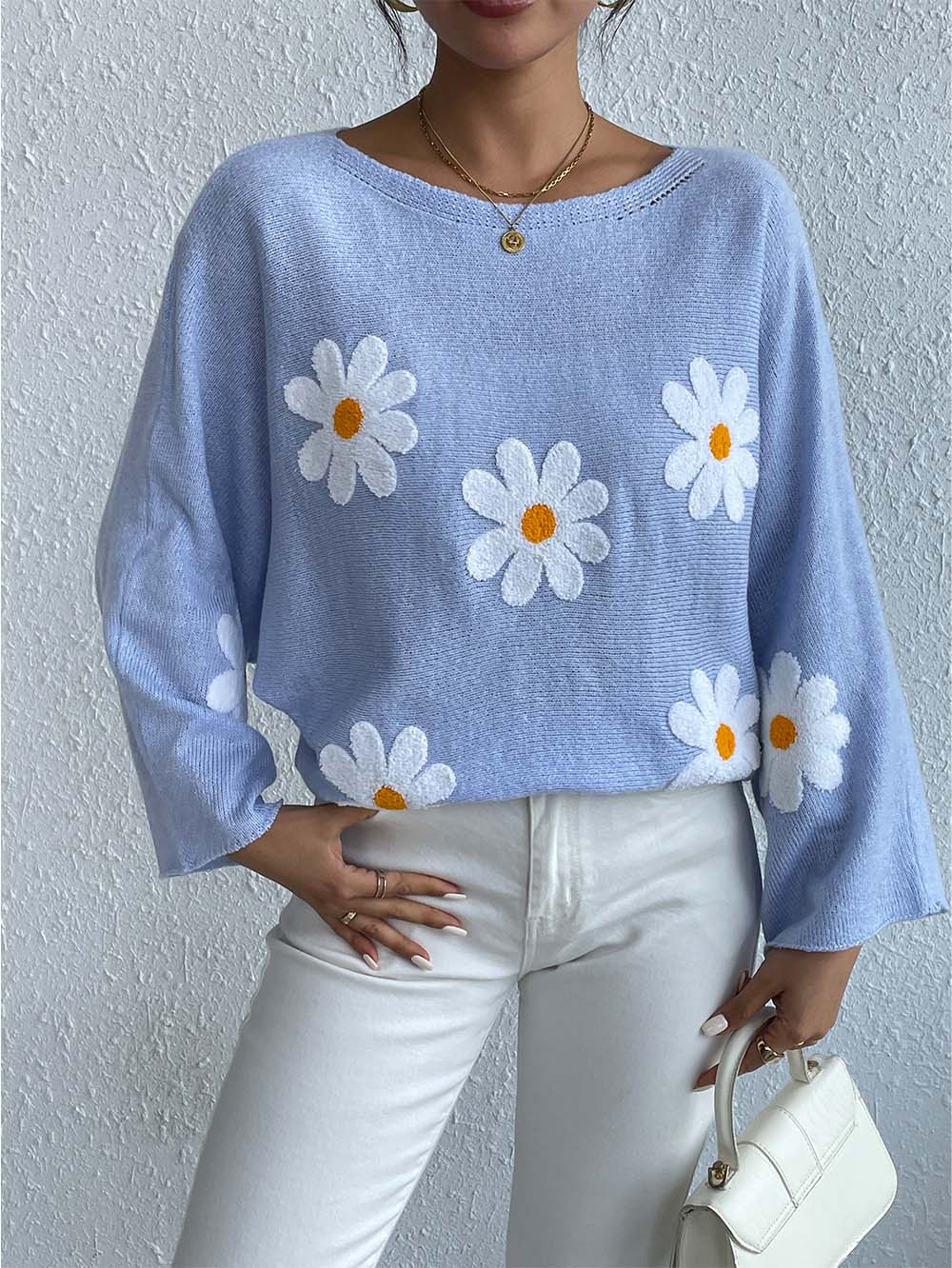 Sweet Floral Bell Sleeve Loose Knit Top | NCS