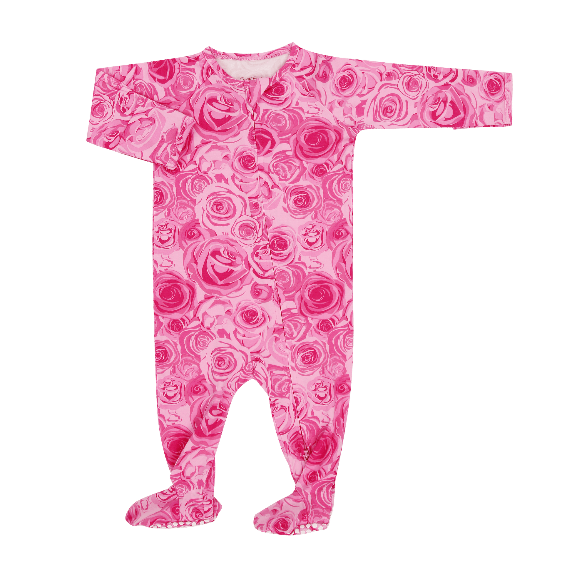 Ask and you shall receive. This yummy footie is equipped with a smooth 2-way zipper, silicone grips on the foot pads and fold-over handcuffs. Plus our silky-soft fabric hugs in all the right places to show off those baby curves.
