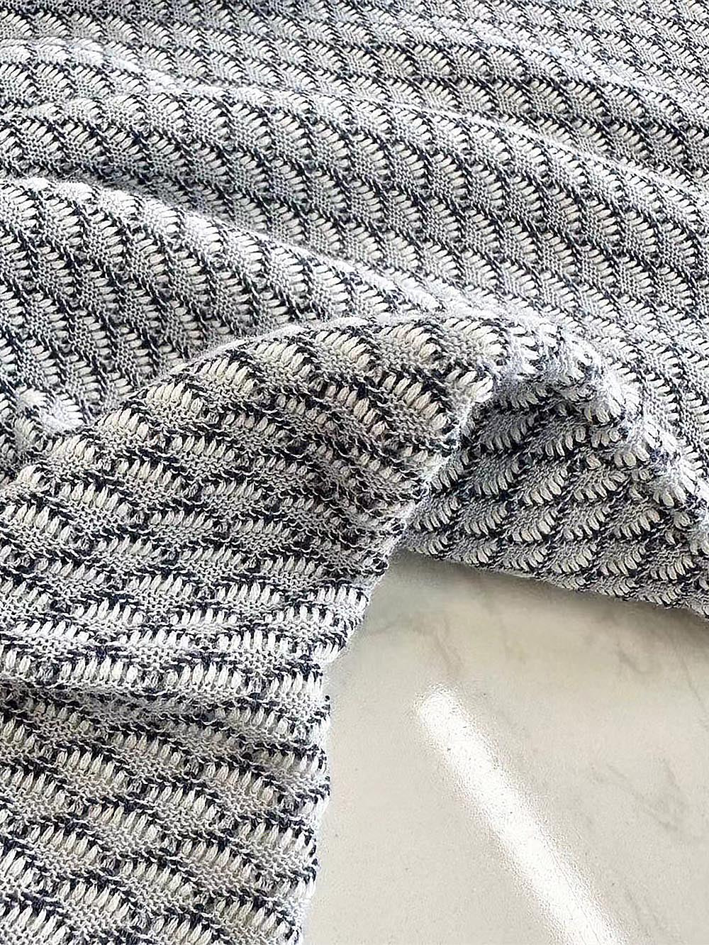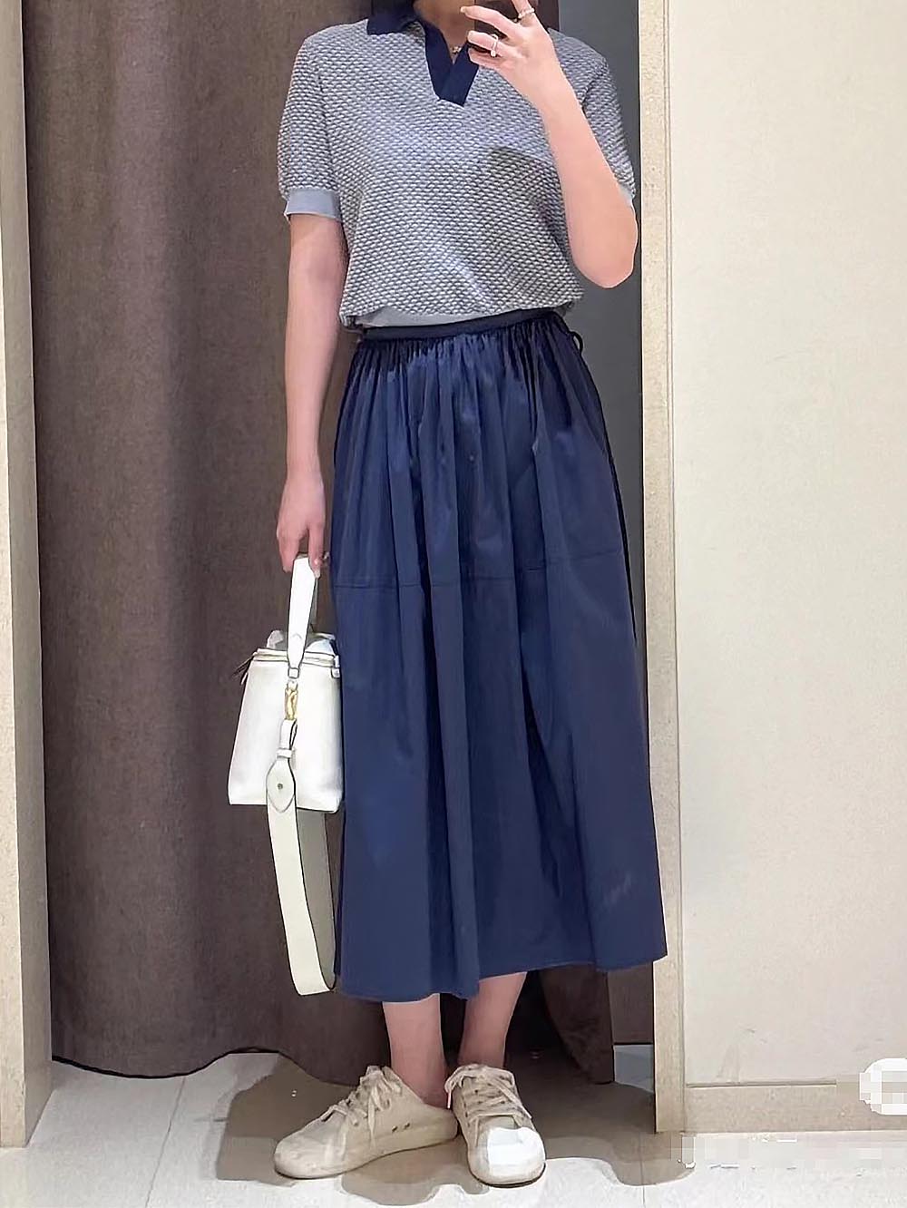 This polo sweater is spun from soft cotton thread and has a relaxed shape. The fish scale pattern design highlights a sense of sophistication.