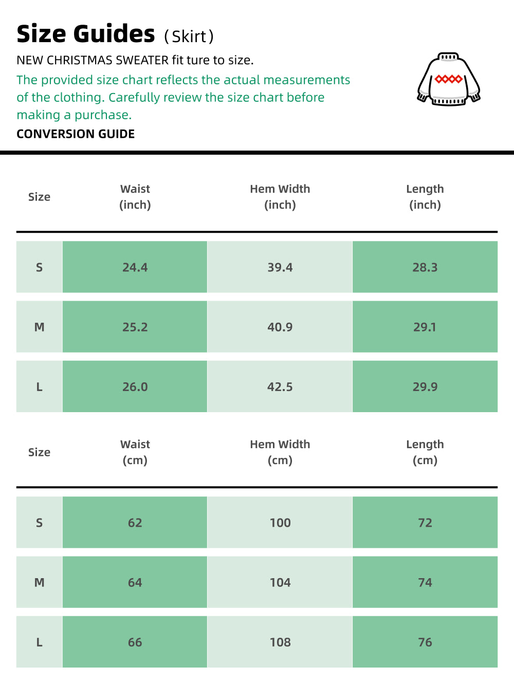 Check the Size Chart: The provided size chart reflects the actual measurements of the clothing. Carefully review the size chart before making a purchase.