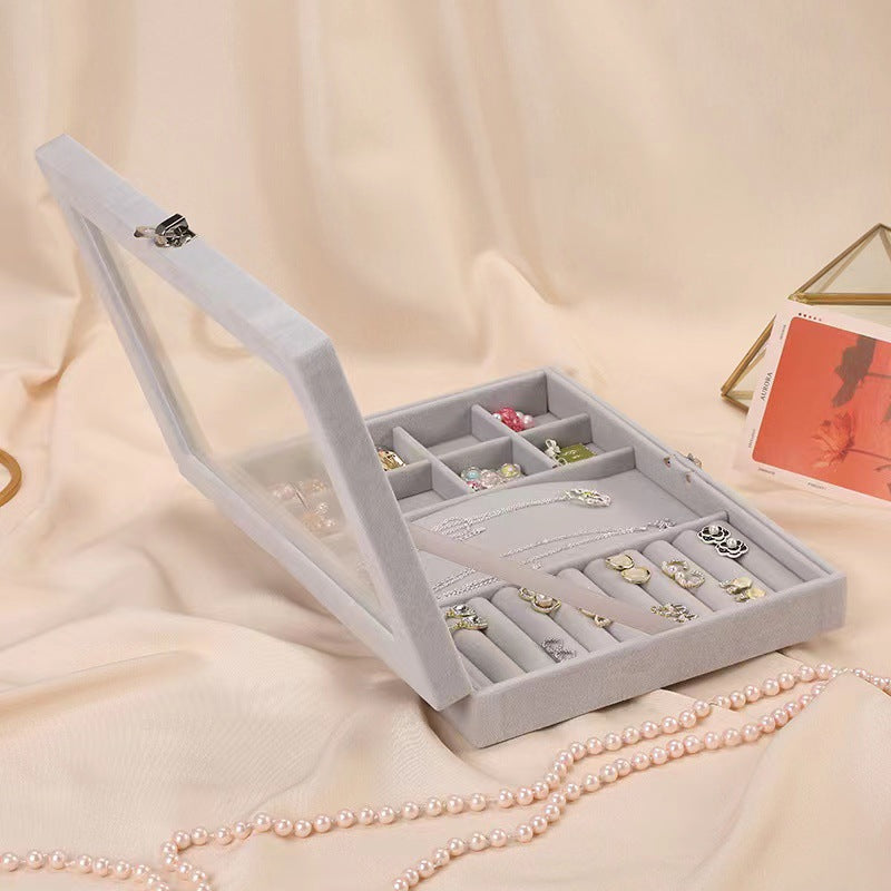 Transparent, fashionable and exquisite dust ring storage box, earrings, earrings, necklace storage box, flannel jewelry jewelry storage box, jewelry display jewelry box.
