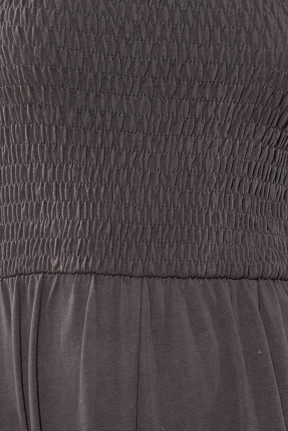 A washed knit jumpsuit featuring straight neckline, shoulder ties, smocked bodice, front pocket and wide leg