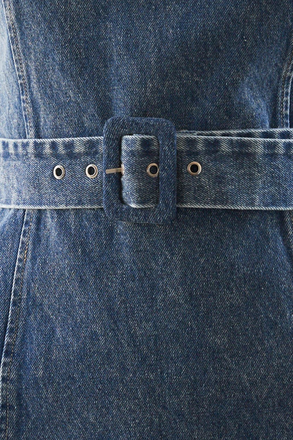 An acid washed mini dress featuring round neckline, sleeveless, self belt and back zipper closure