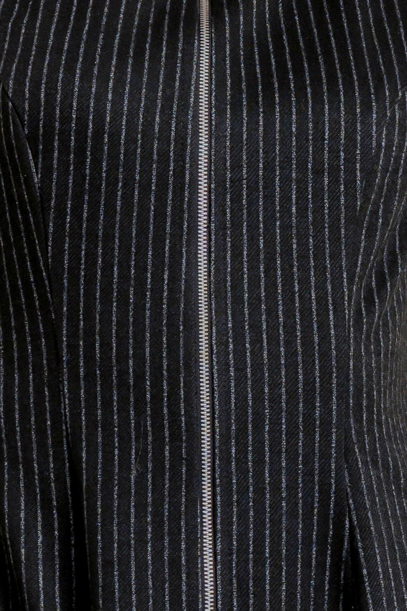 A striped woven midi dress featuring round neckline, sleeveless, circle skirt and front zipper closure