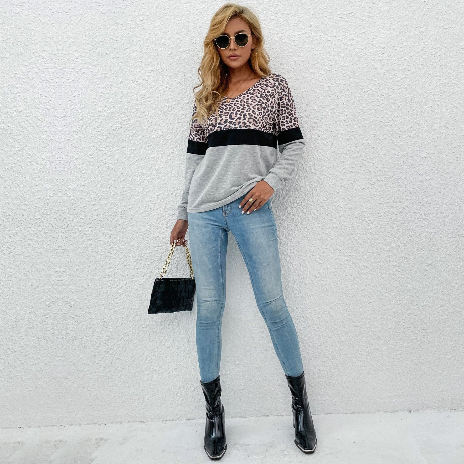 ??/strong>??he Anna-Kaci sweater is detailed with a bold color block design mixing solid colors and leopard print. Features a v neck line, long sleeves, and a relaxed fit. Pair it with skinny jeans and ankle boots for an easy fall look.