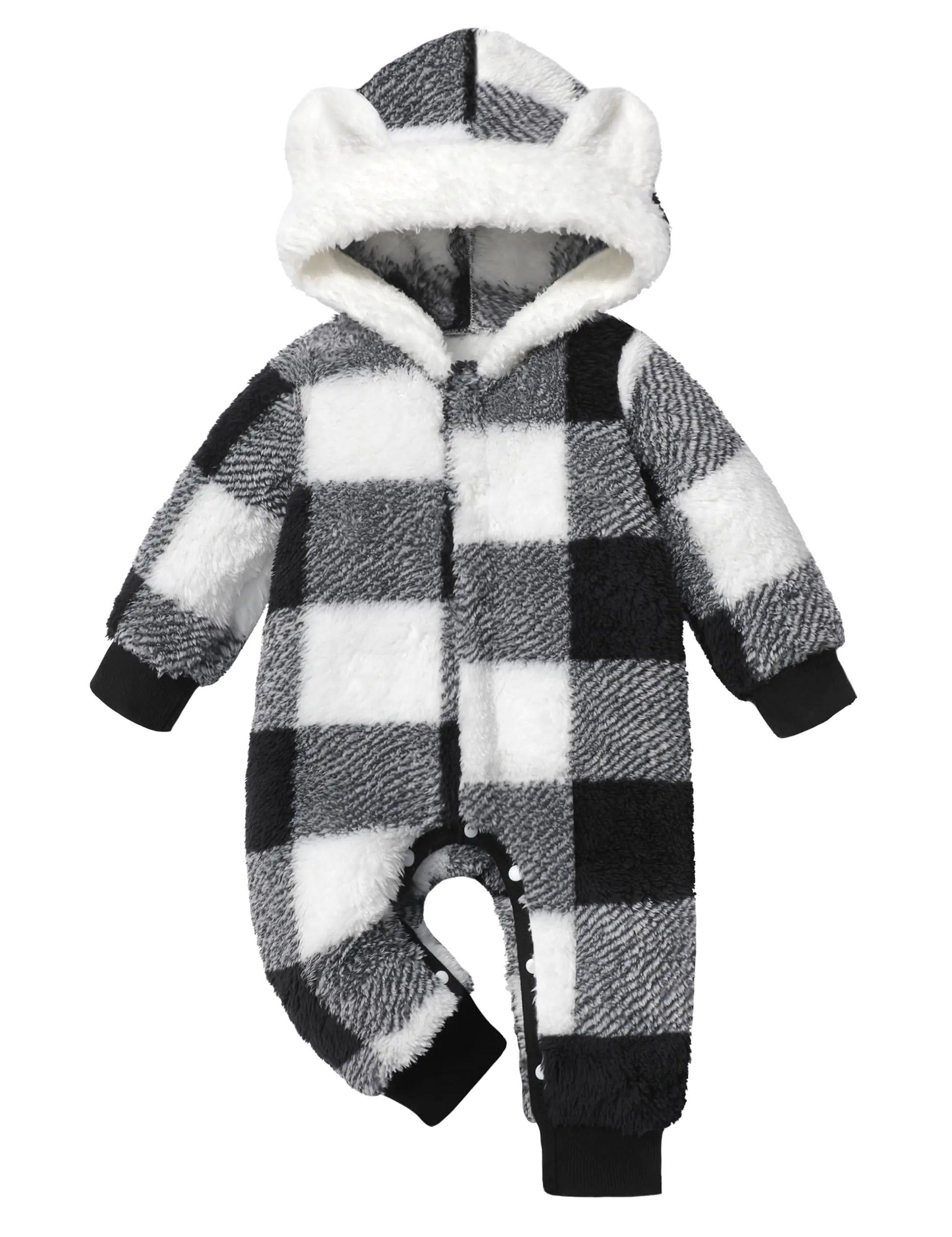 Von kilizo Baby Boy Clothes 3-6 Months Boy Clothes Winter Baby Snowsuit Bunting Warm Suit Bear Fleece Onesie Hooded Plaid Snap Romper Jumpsuit Coat Baby Boy Outfits 3-6 Months Black - # BAAA51210027