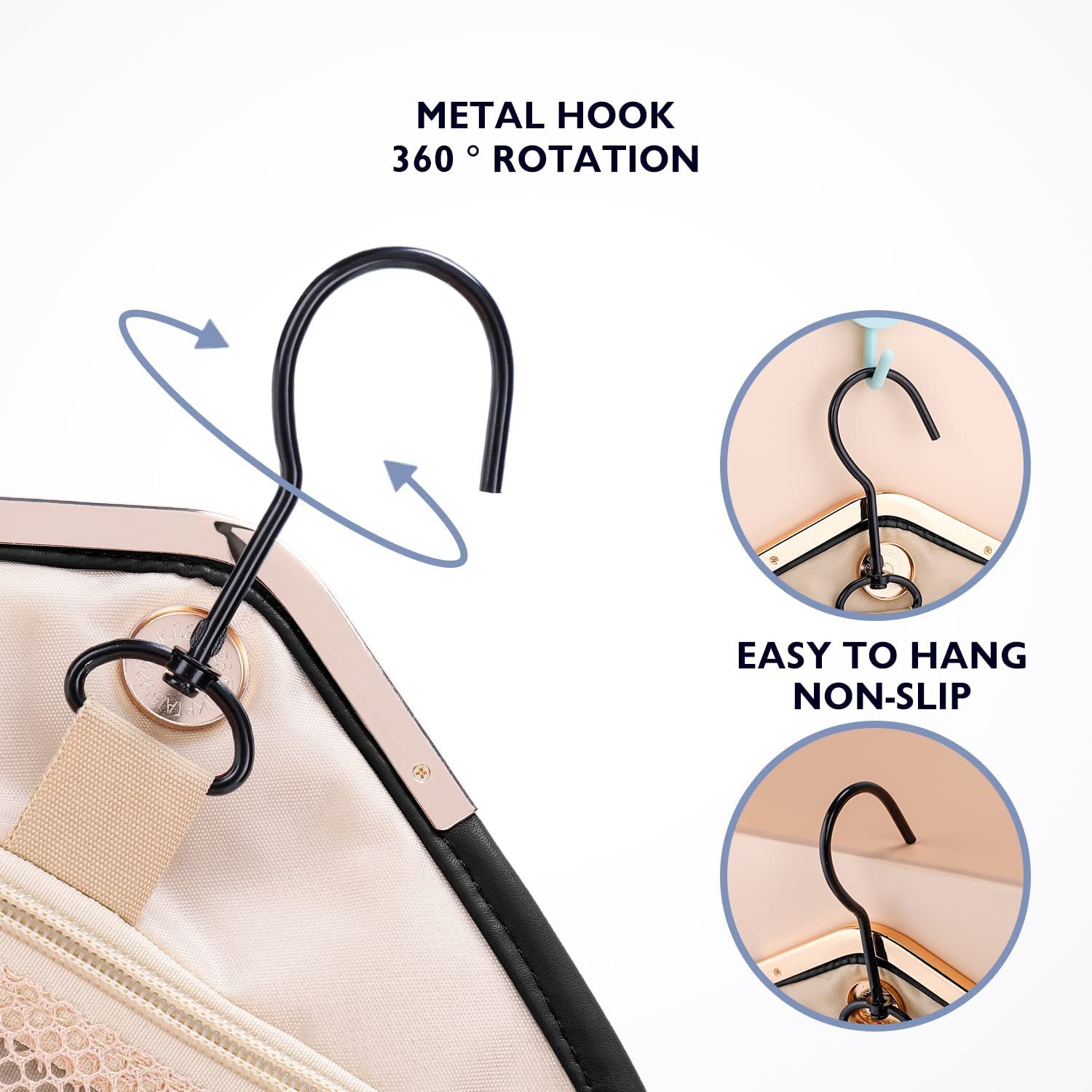 Convenient Hook Design: Equipped with a sturdy hook, this cosmetic bag storage bag allows for easy hanging in hotel bathrooms or compact travel spaces, maximizing convenience and accessibility.