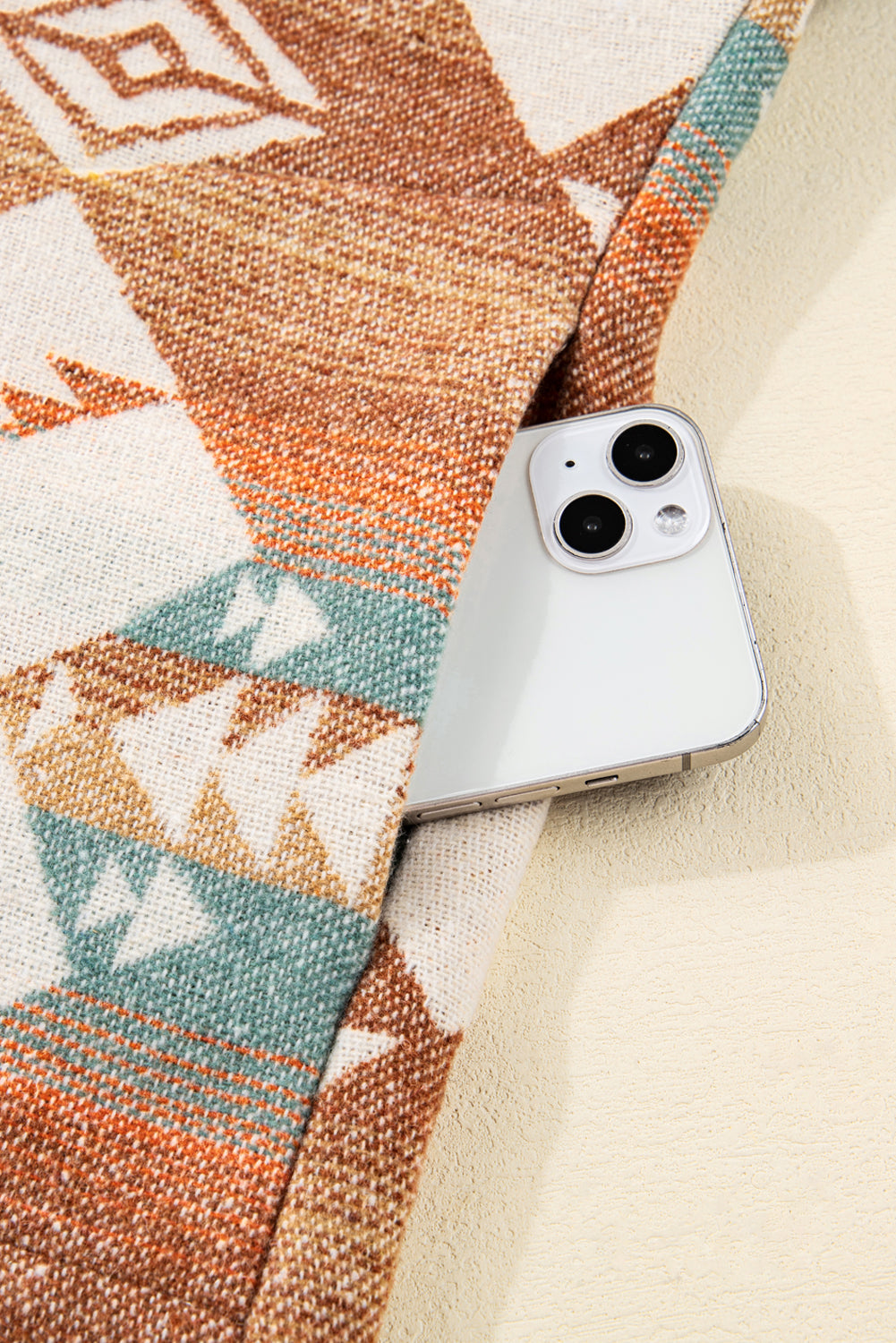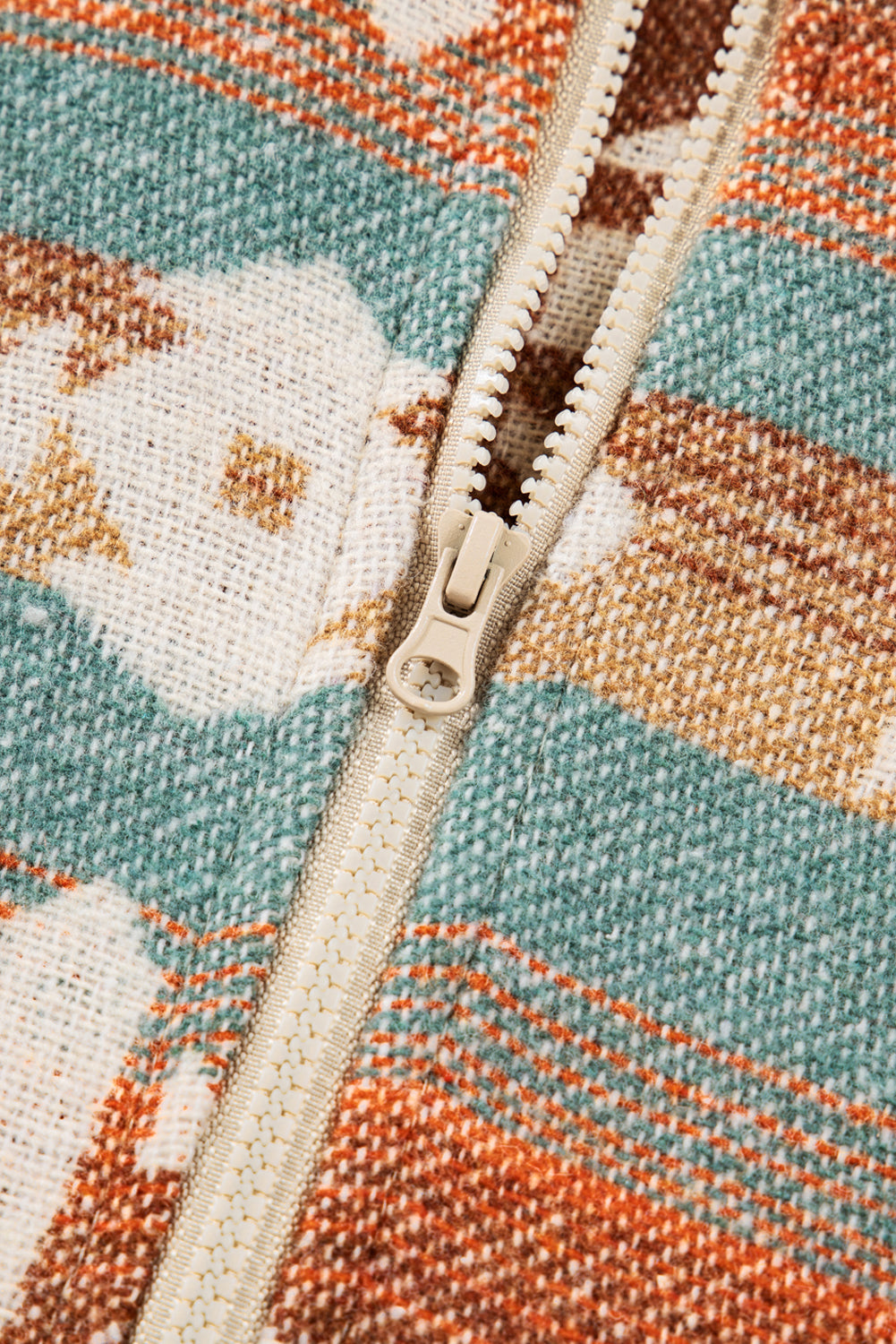 Western Aztec Quarter-Zip Elastic Cuffs Sweatshirt