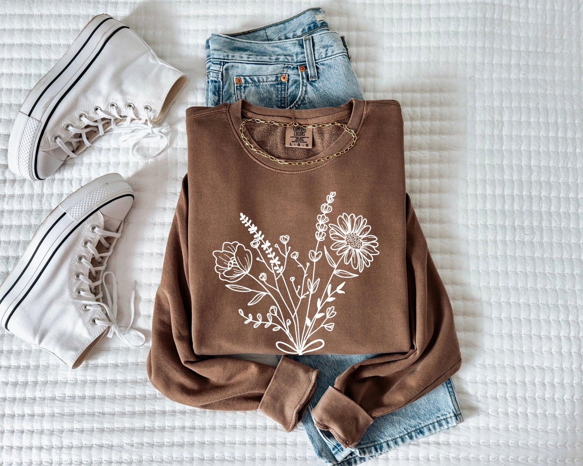 Wildflower Bouquet Plant Botanical Garment Dyed Comfort Colors Sweatshirt
