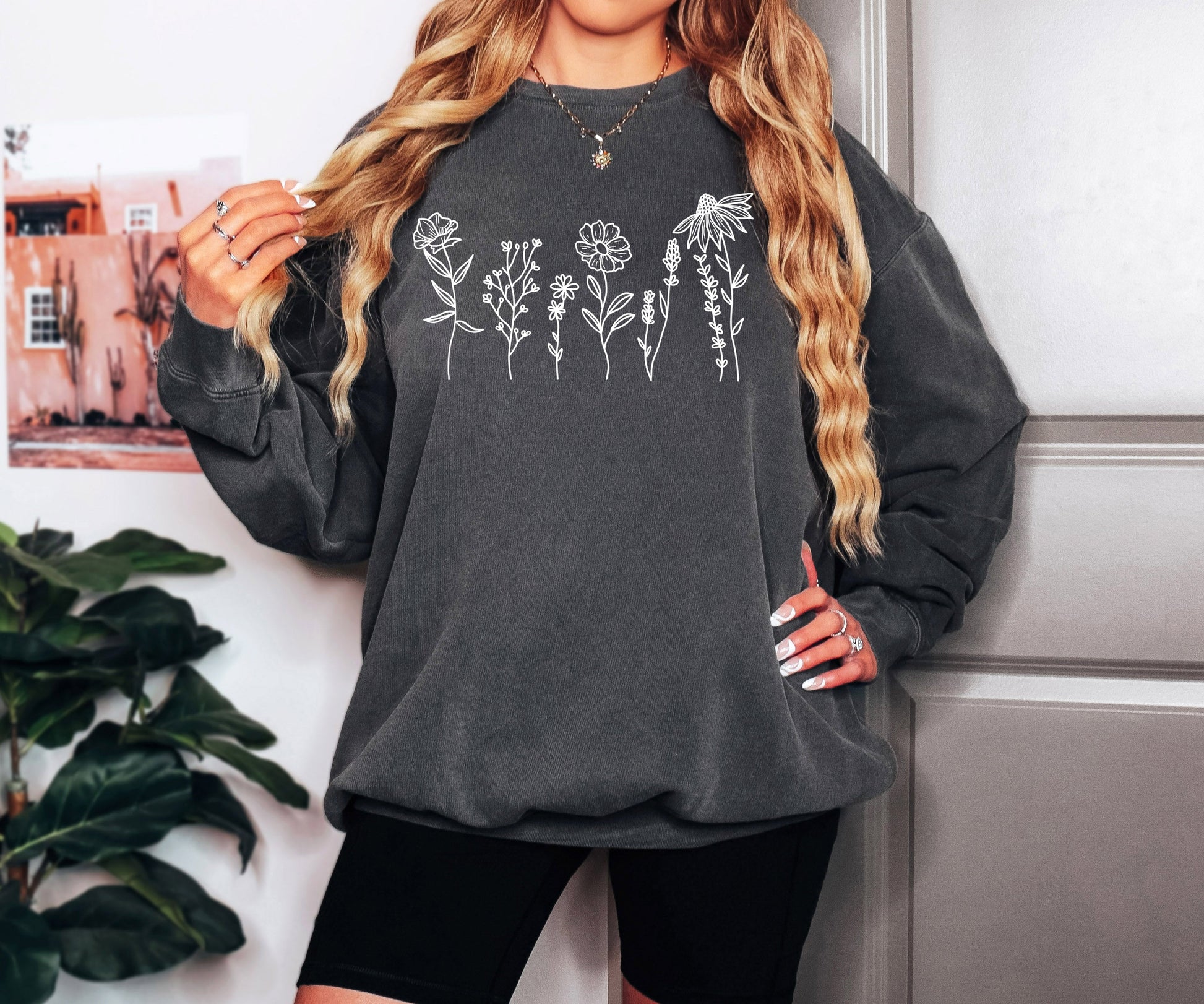 Wildflowers Botanical Garment Dyed Comfort Colors Sweatshirt