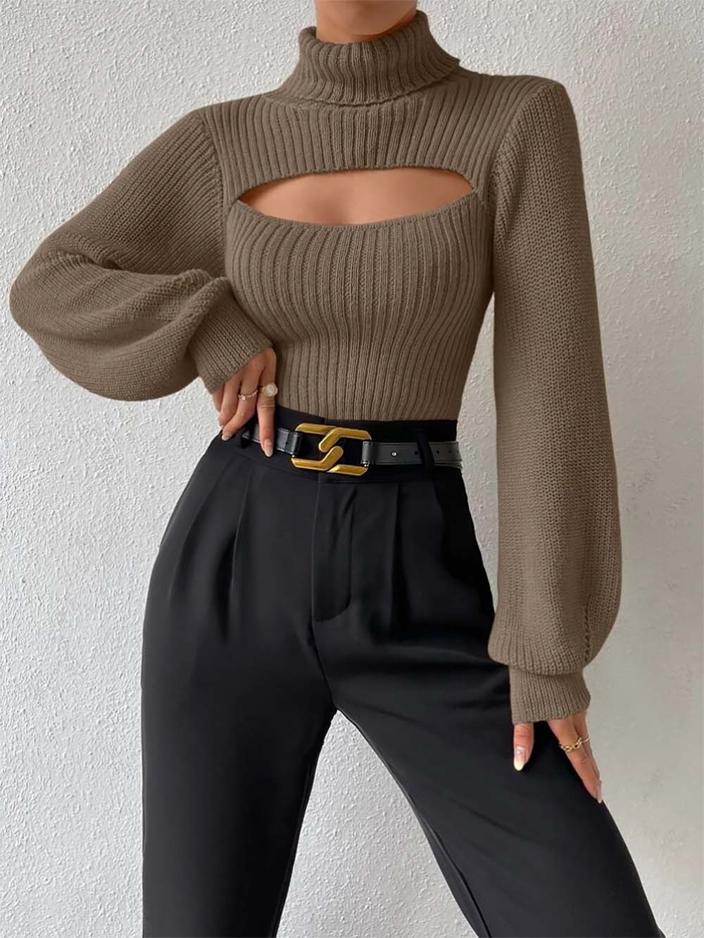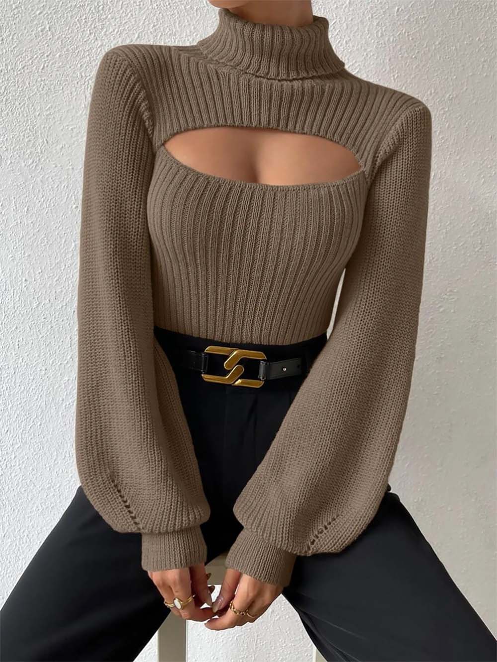 Women Sexy Solid Turtleneck Knitted Sweater | NCS