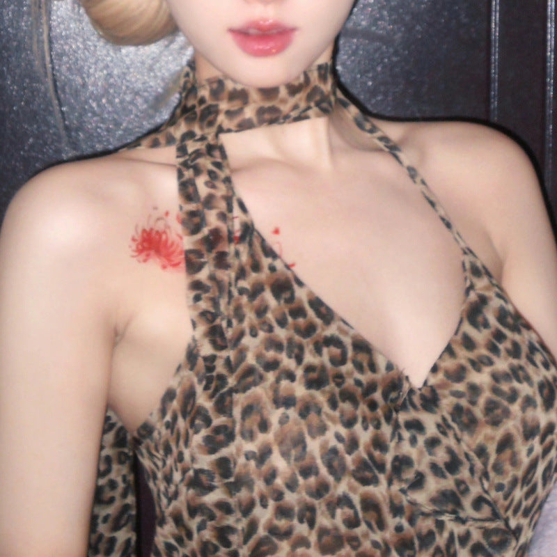 Unique Elements: Includes leopard print and adjustable ribbon accents.