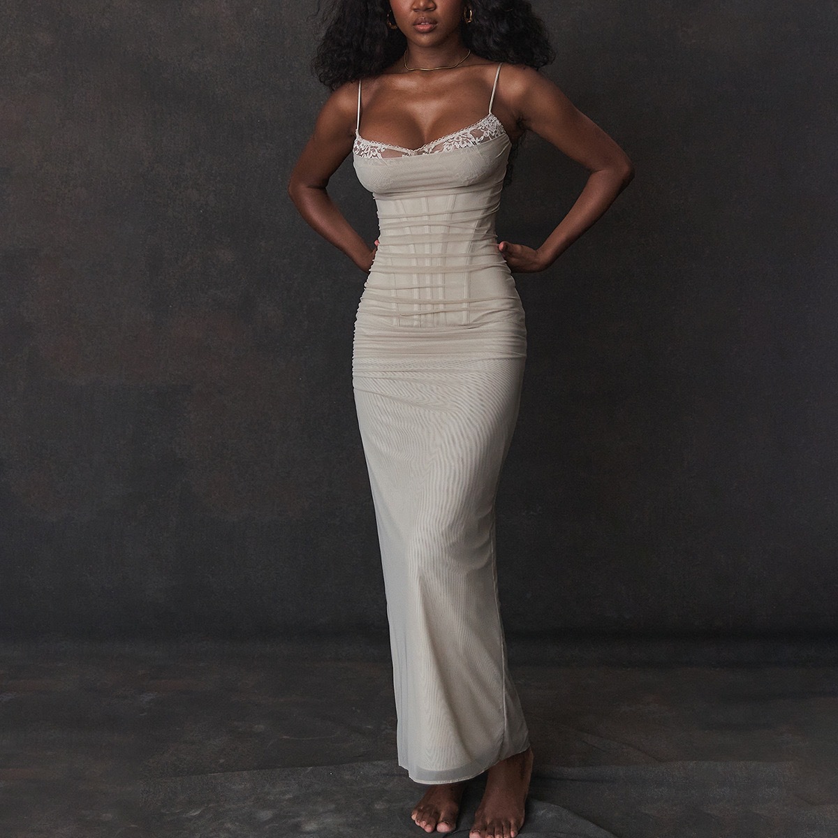 Women's Mesh Lace Slim-fit Fishbone Long Dress
