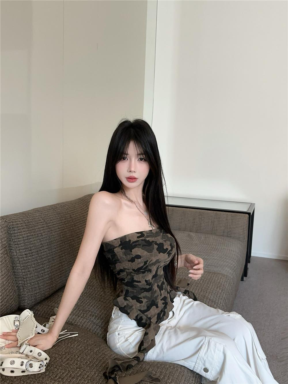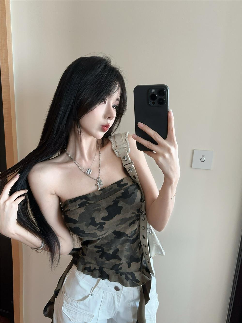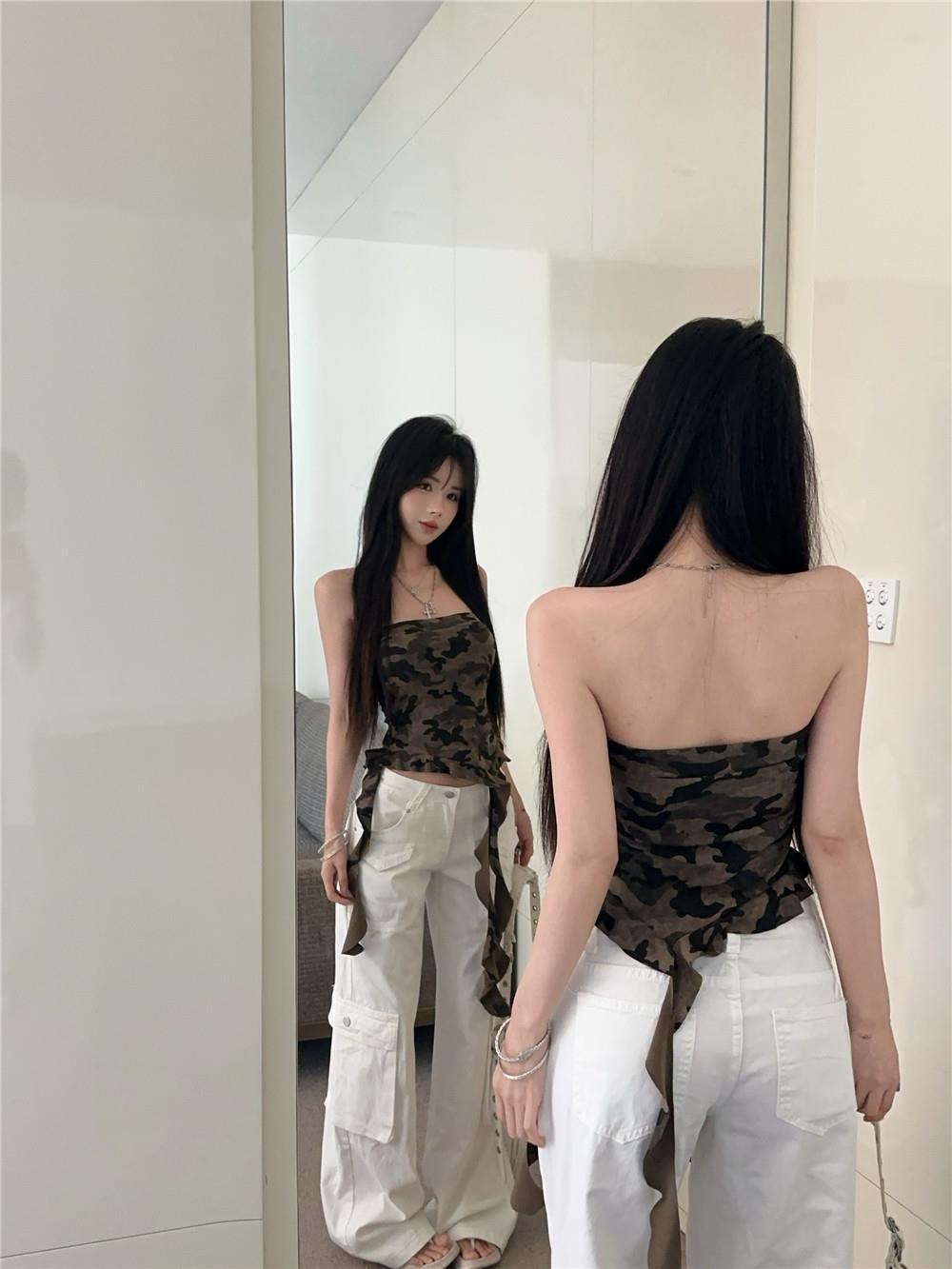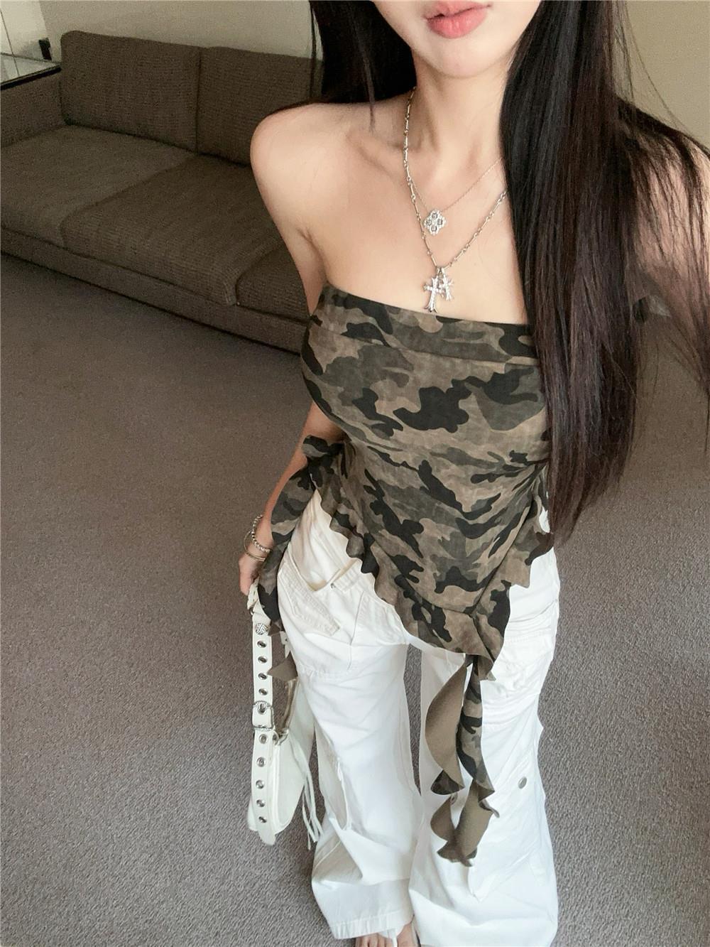 Trendy Design: Features camouflage print and irregular ruffled ribbon for a stylish look.