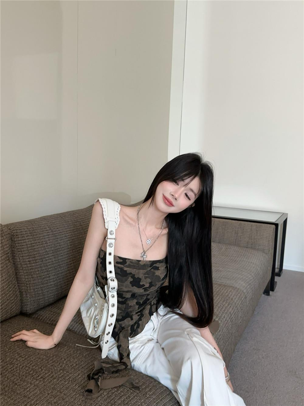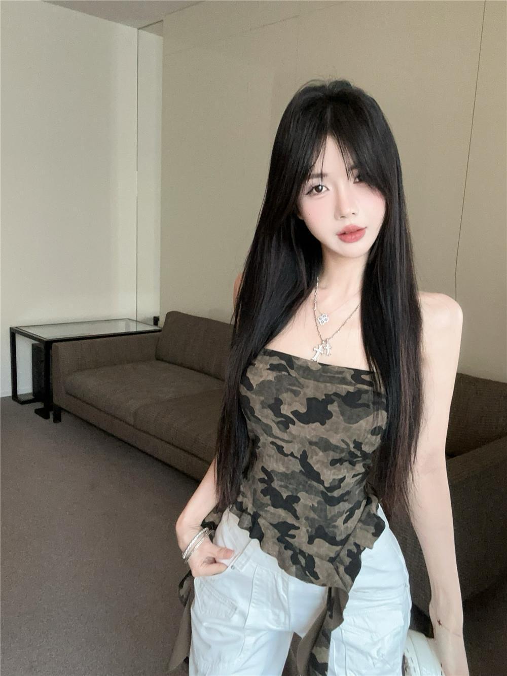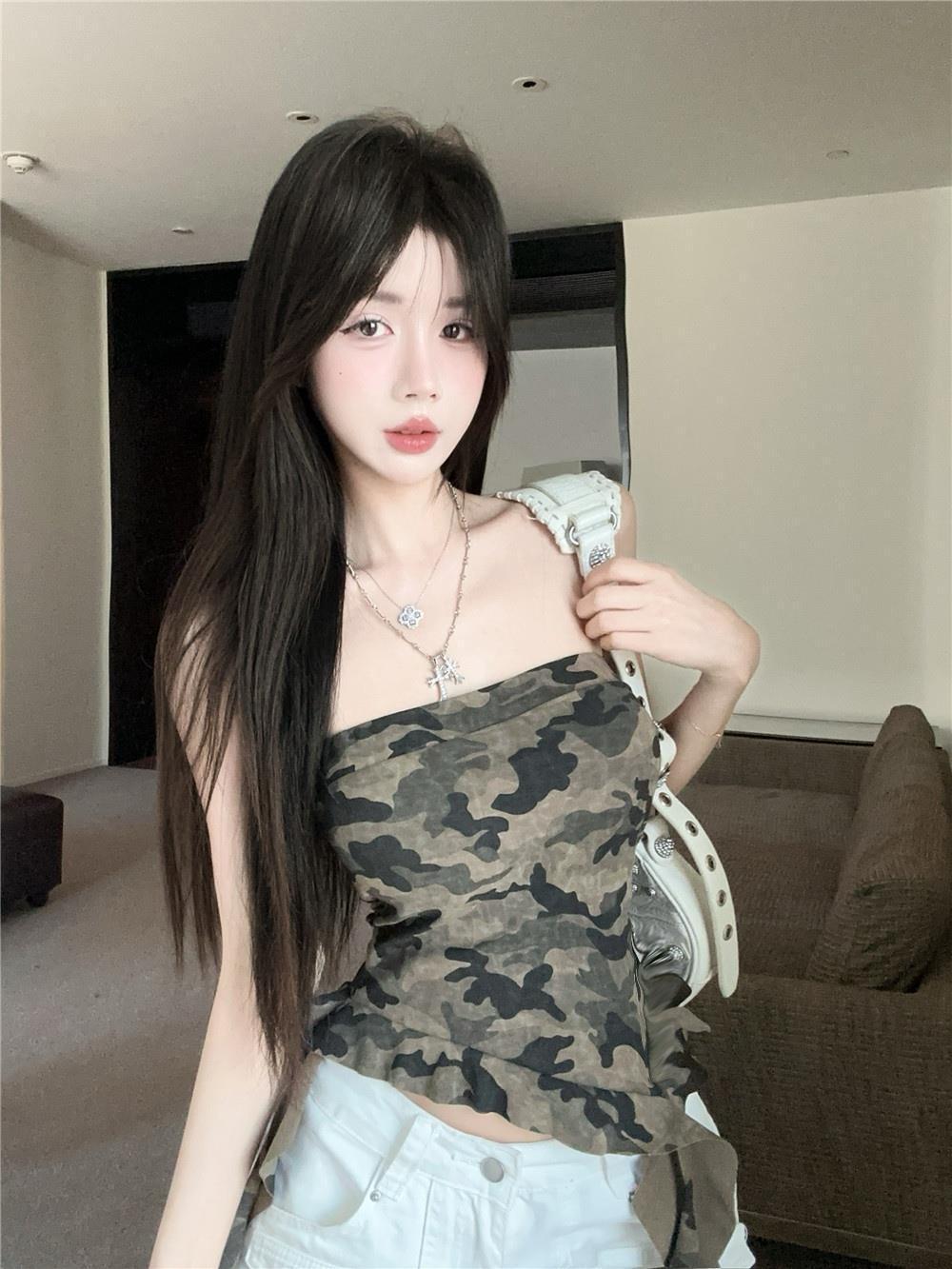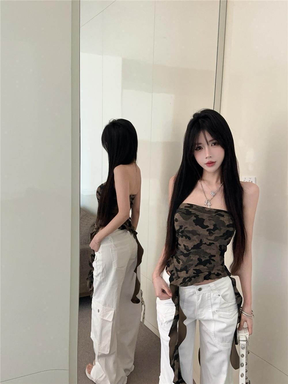 Trendy Design: Features camouflage print and irregular ruffled ribbon for a stylish look.