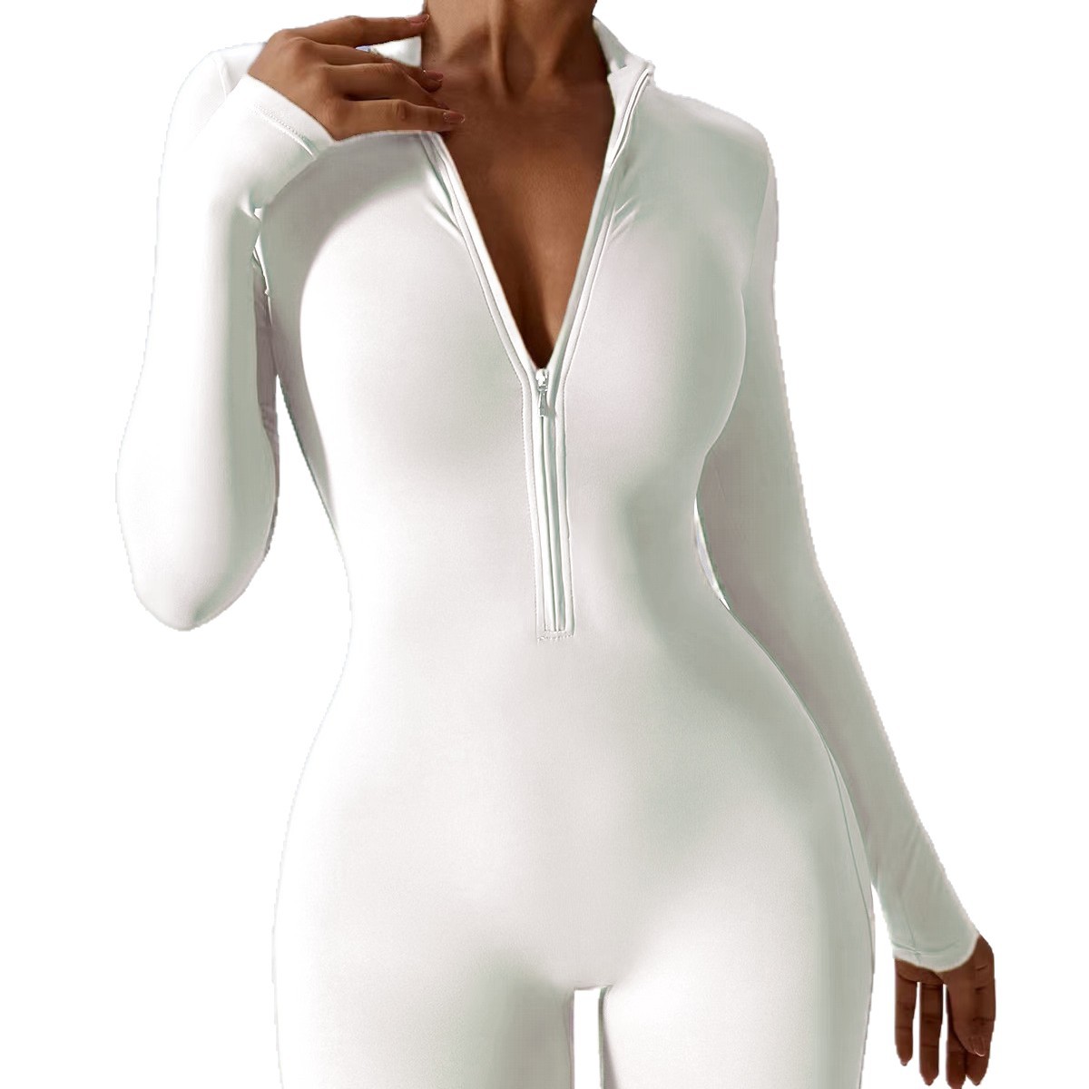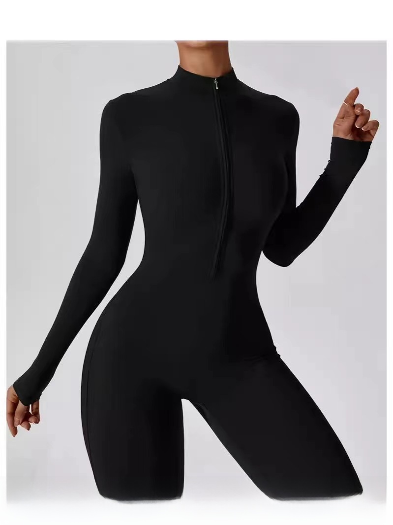 Design: Long-sleeve, full-length jumpsuit with front zipper