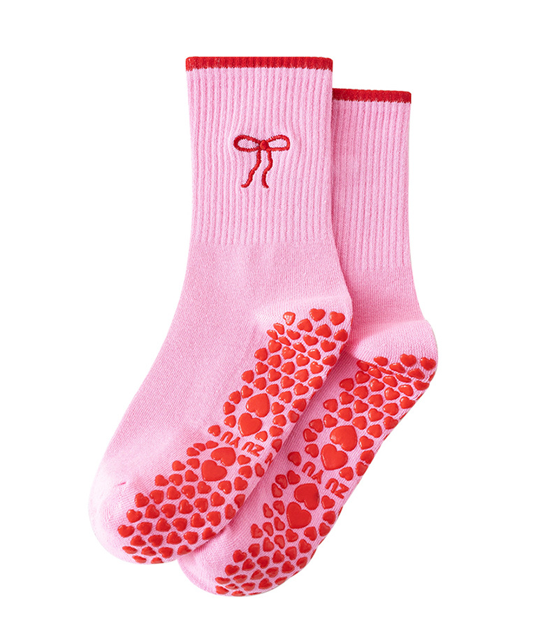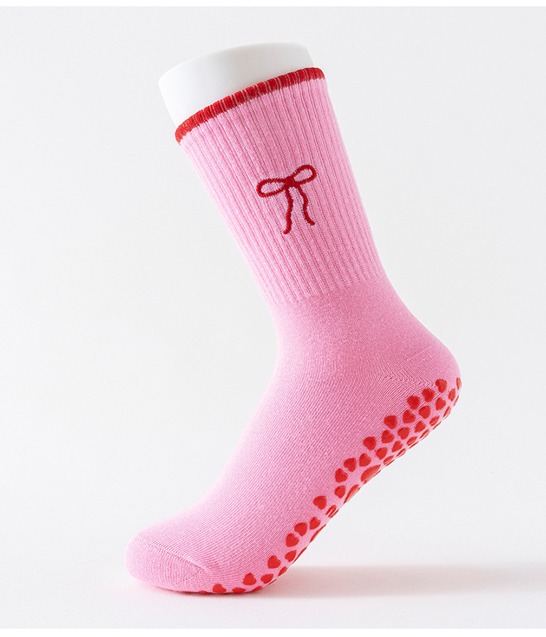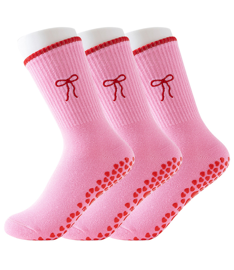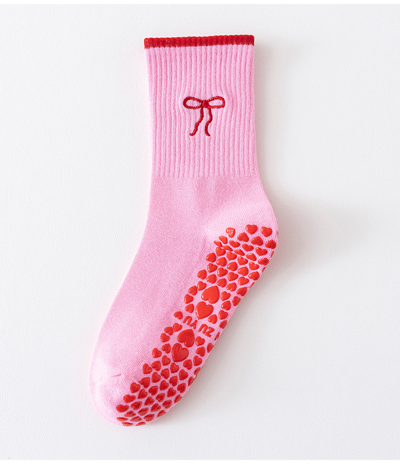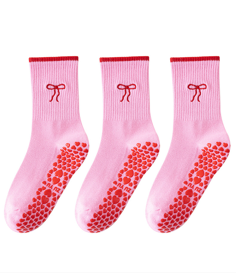 Yoga Socks Women's Mid-Calf Cotton Socks Breathable Embroidered Bow Professional Anti-Slip Dispensing Fitness Training Pilates Socks