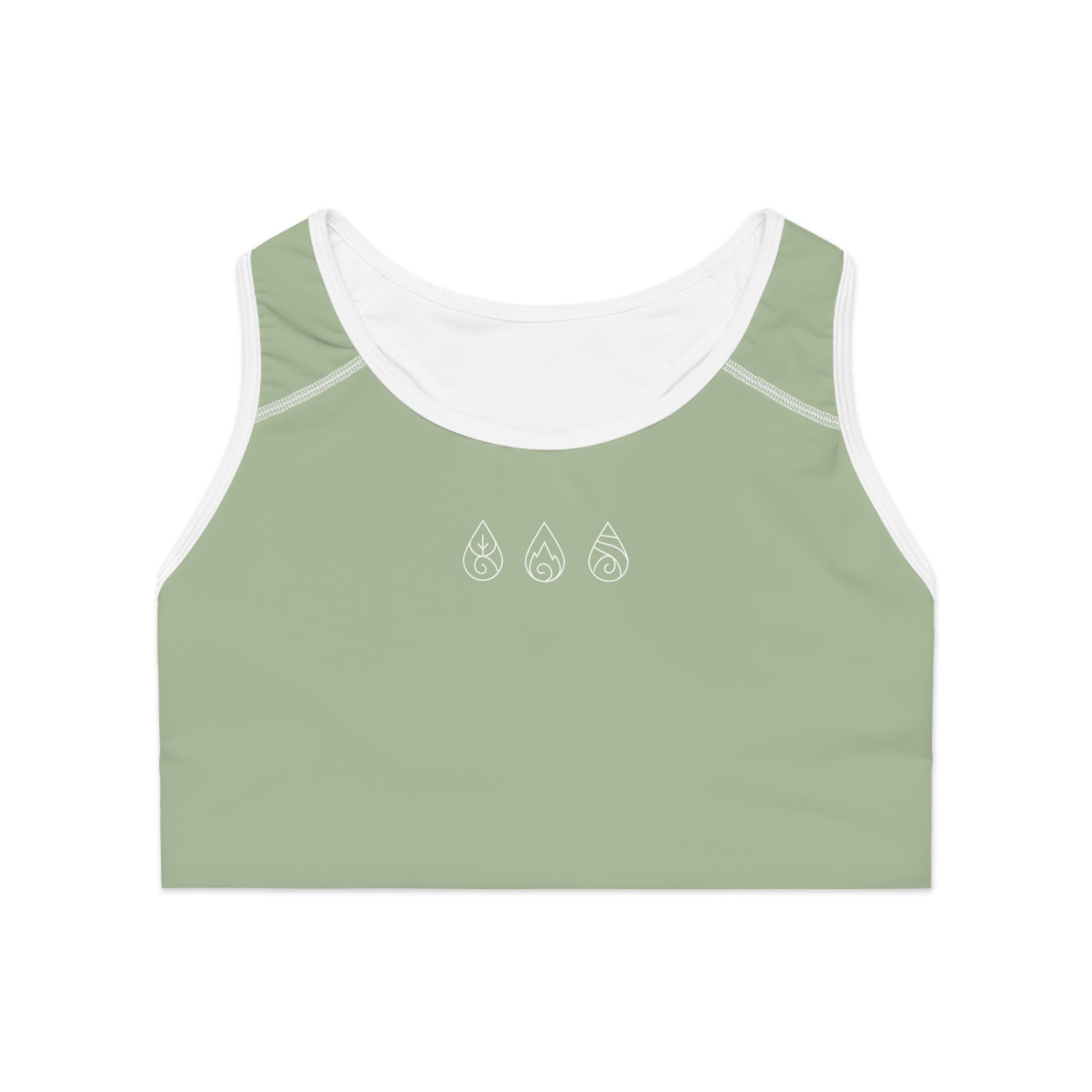 sage green yoga sports bra, breathable ayurvedic activewear usa, compression sports bra for women, tridoshic workout top, mindful movement apparel made in usa, holistic fitness wear, sustainable yoga clothing for vata pitta kapha.